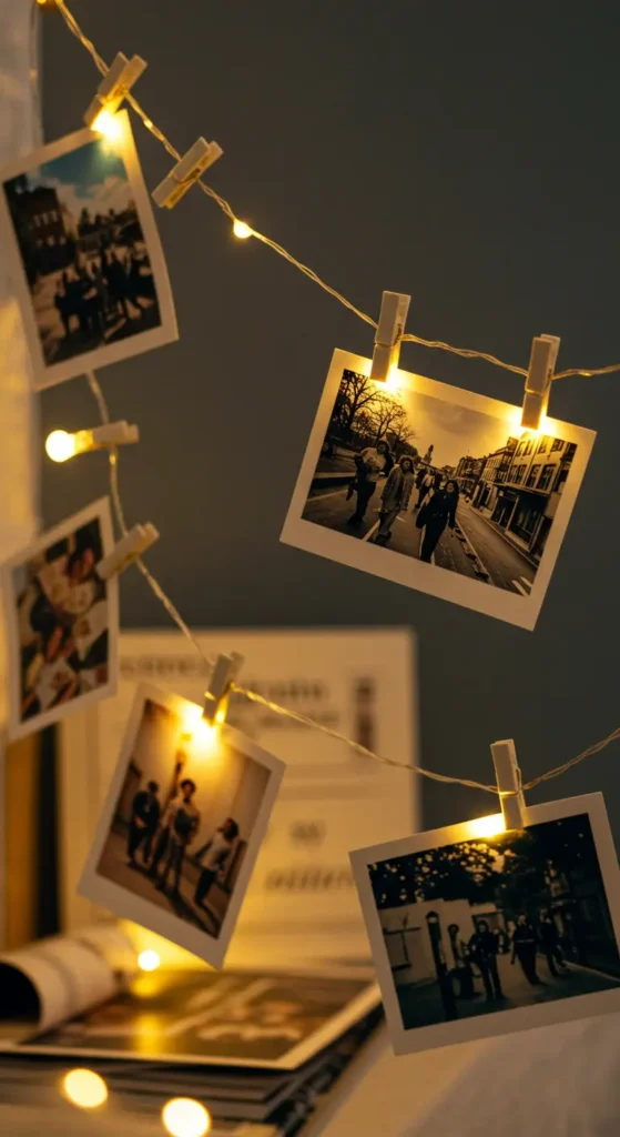 Combine cozy lighting with personalized décor using clip string lights. These let you hang photos, postcards, or mini artwork while adding a warm glow to your space.